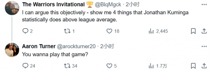 他的经纪人阿隆-特纳(Aaron Turner)今天参与了推特上关于库明加的讨论,但是被网友骂得狗血淋头。